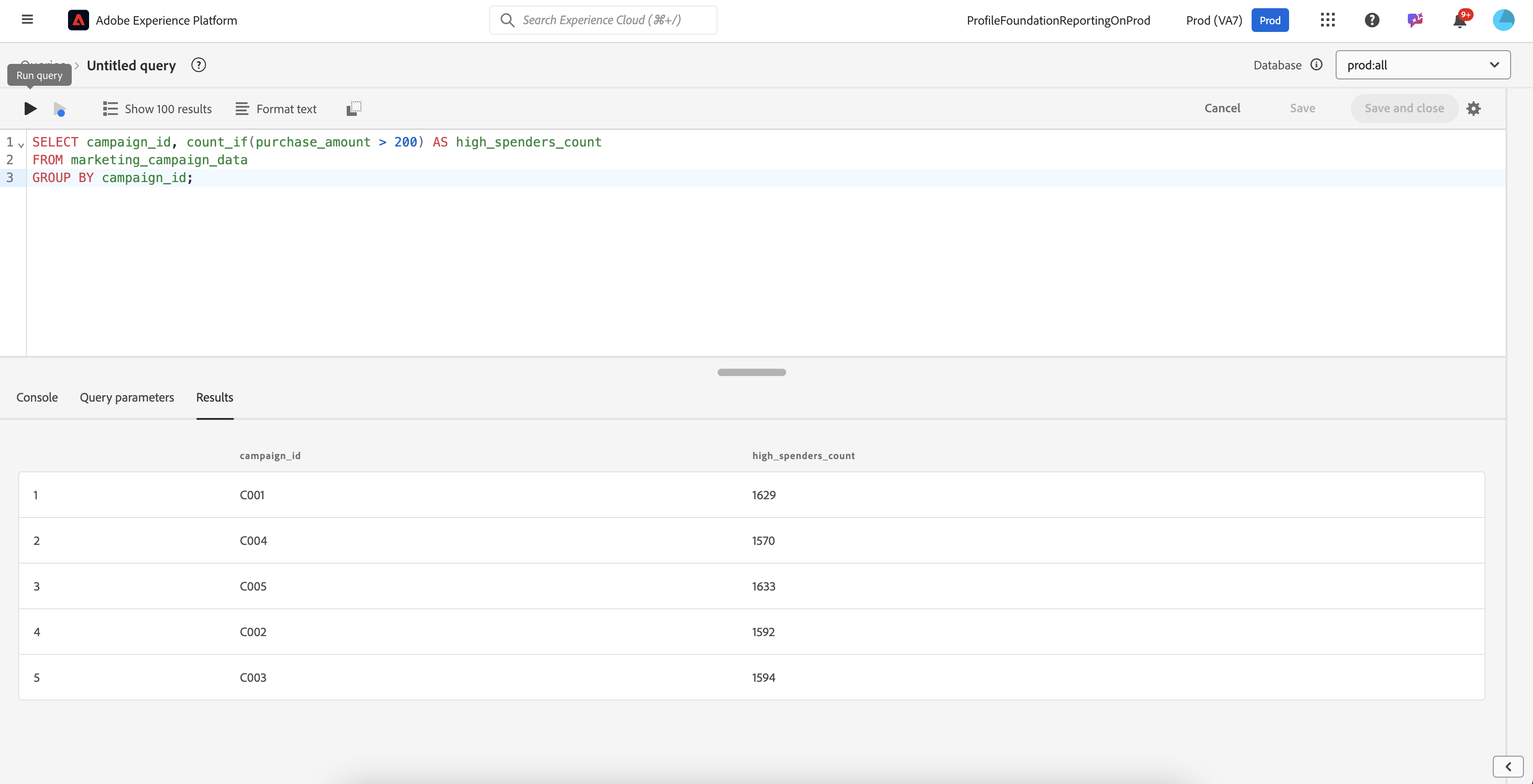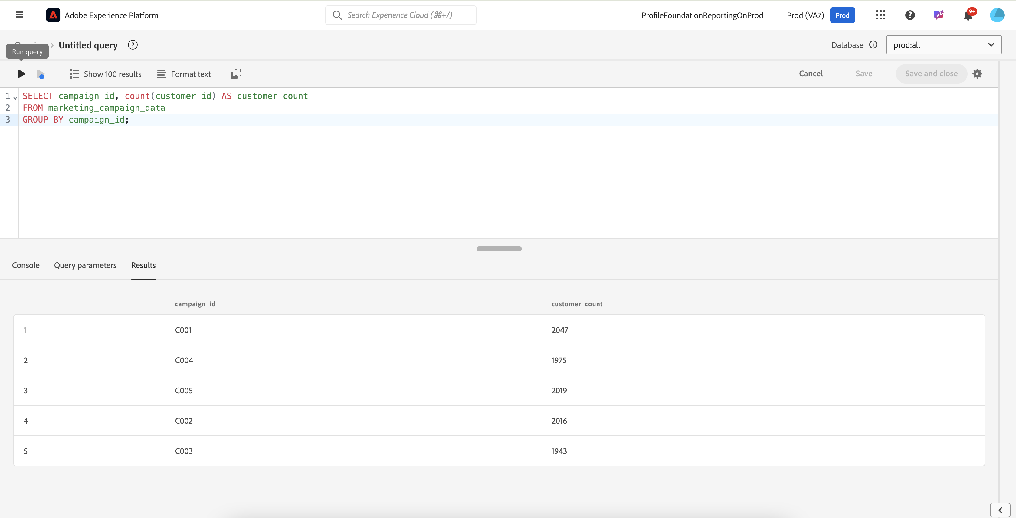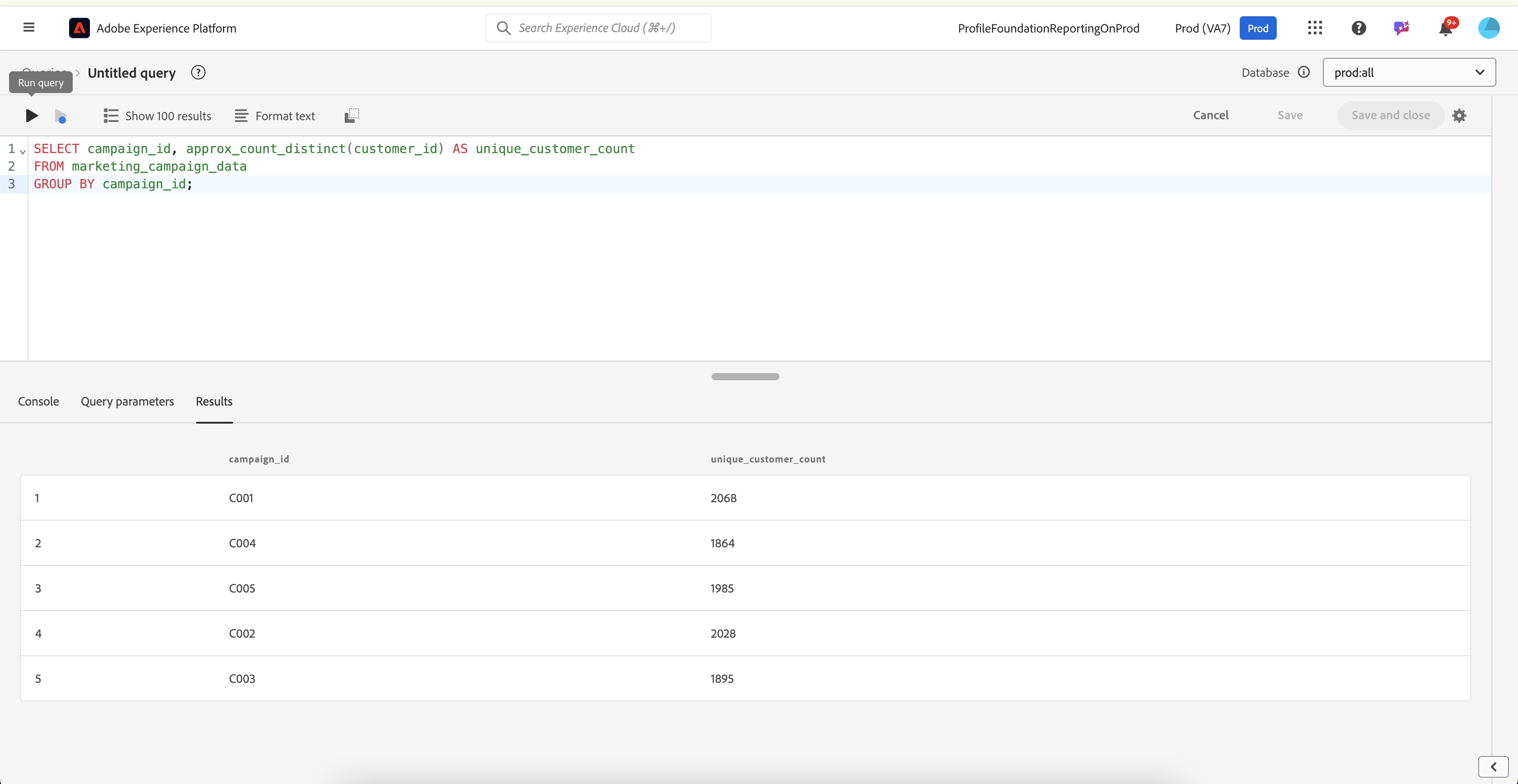 SELECT campaign_id, approx_count_distinct(customer_id) AS unique_customer_count