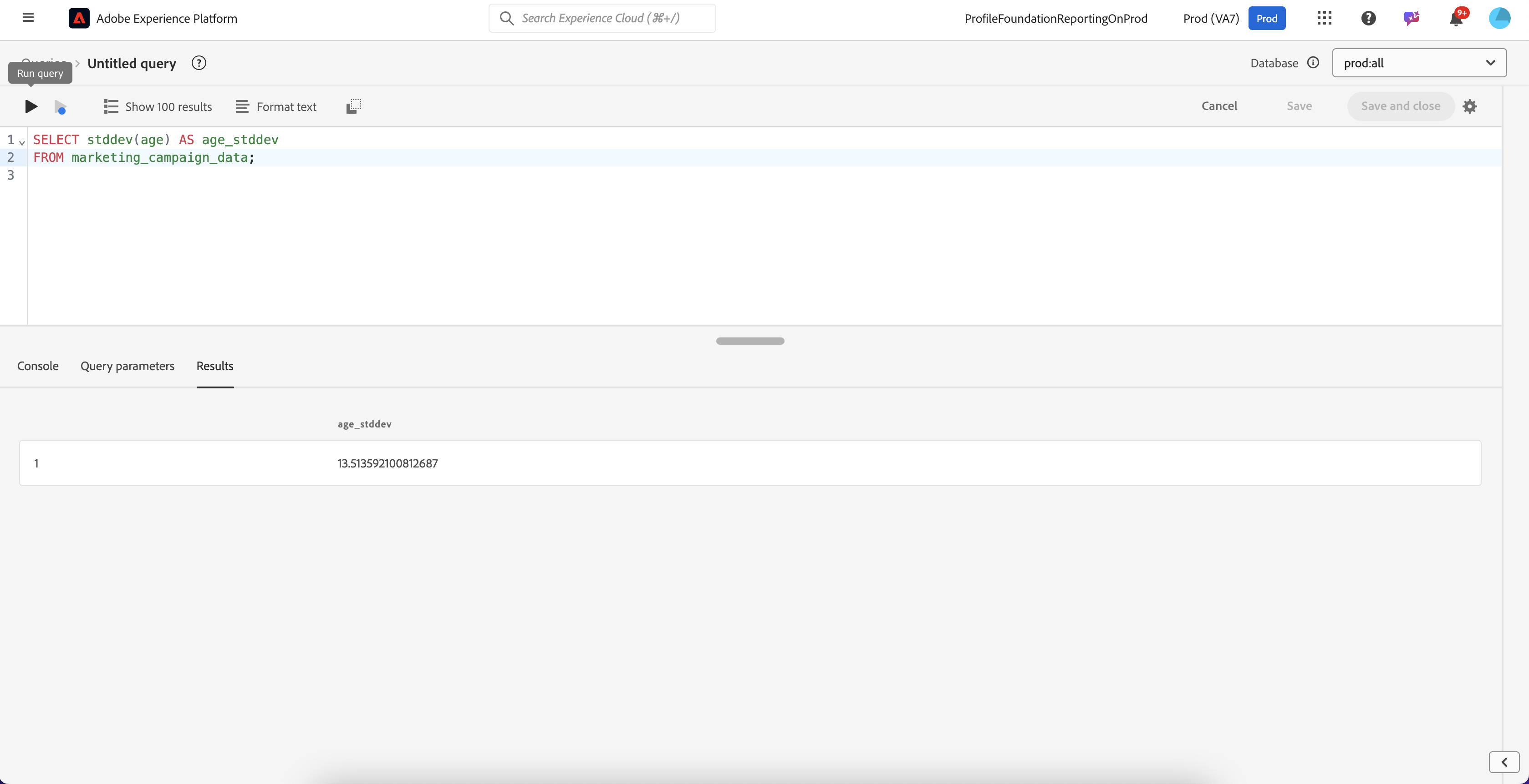 SELECT stddev(age) AS age_stddev