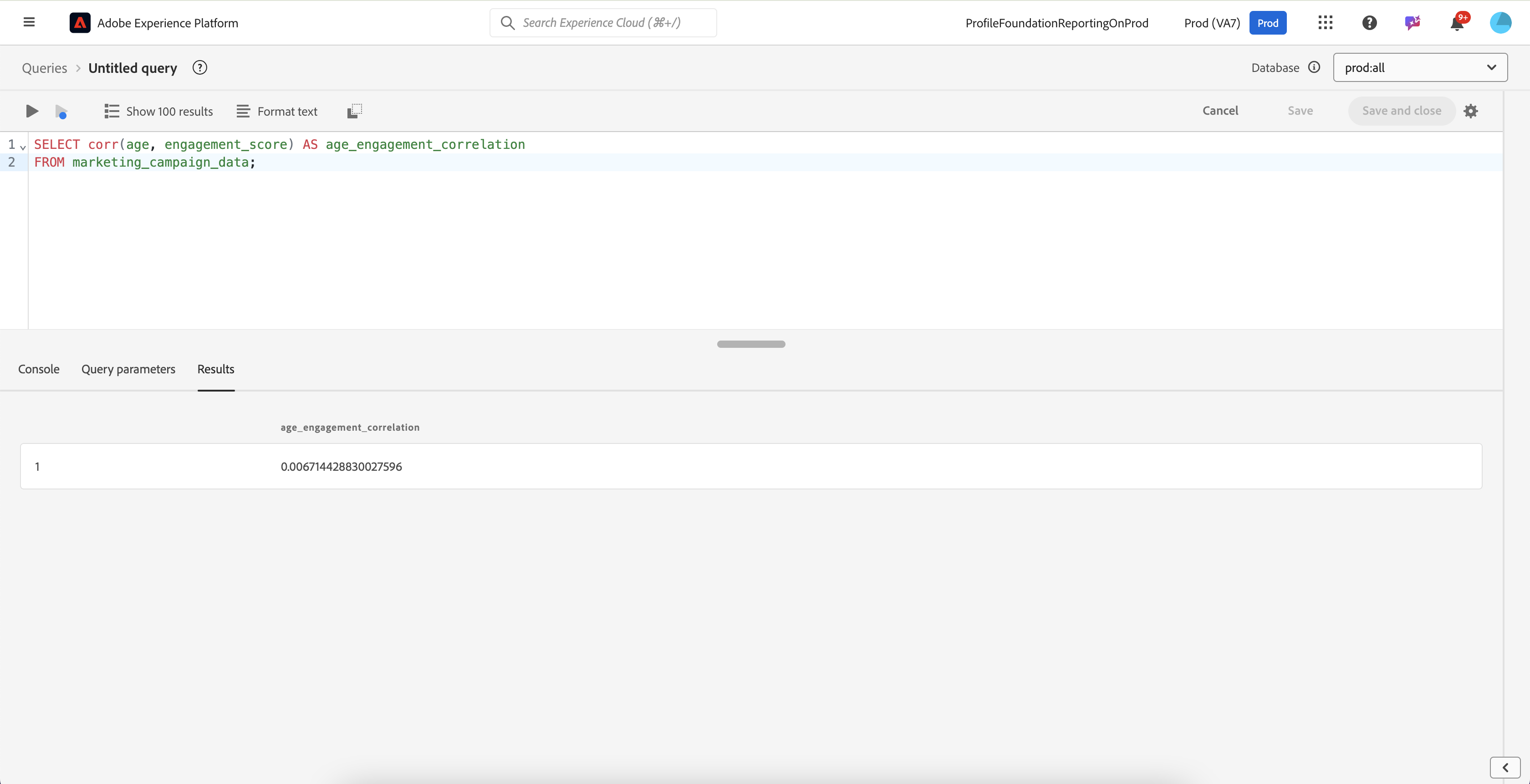 SELECT corr(age, engagement_score) AS age_engagement_correlation