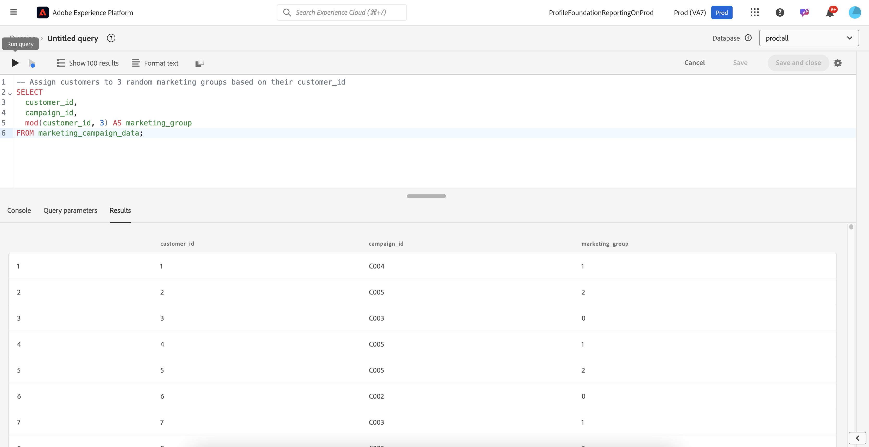 mod(customer_id, 3) AS marketing_group