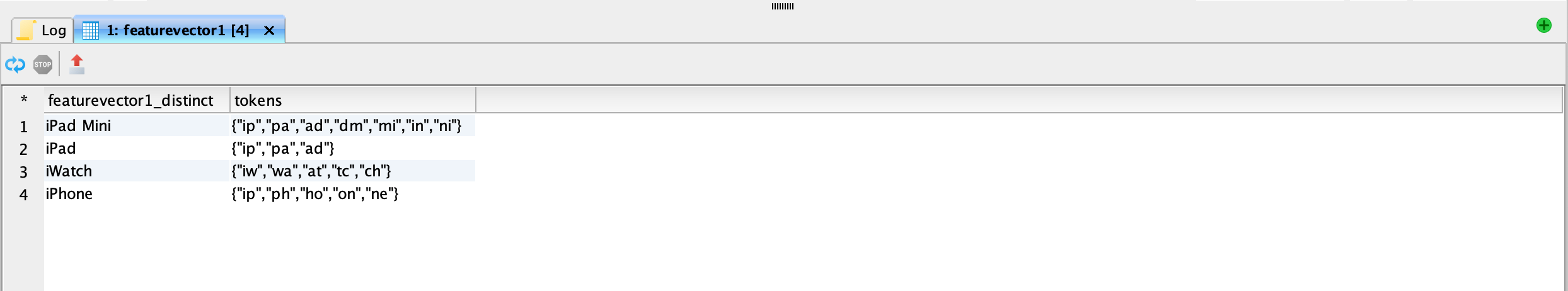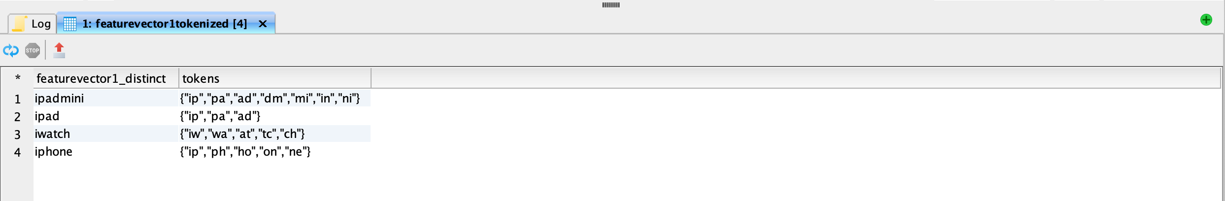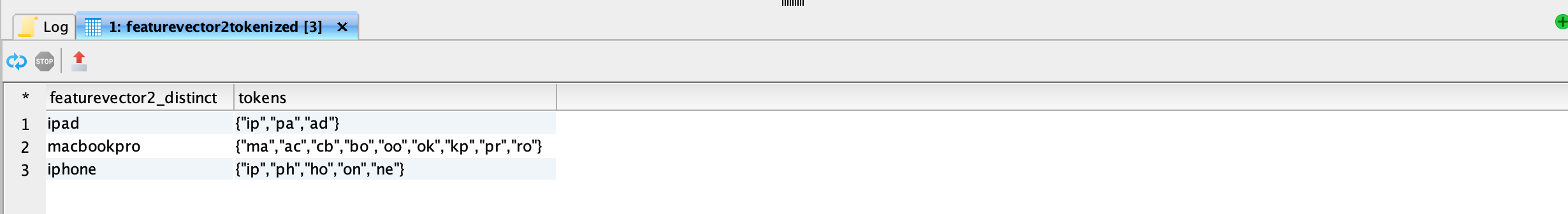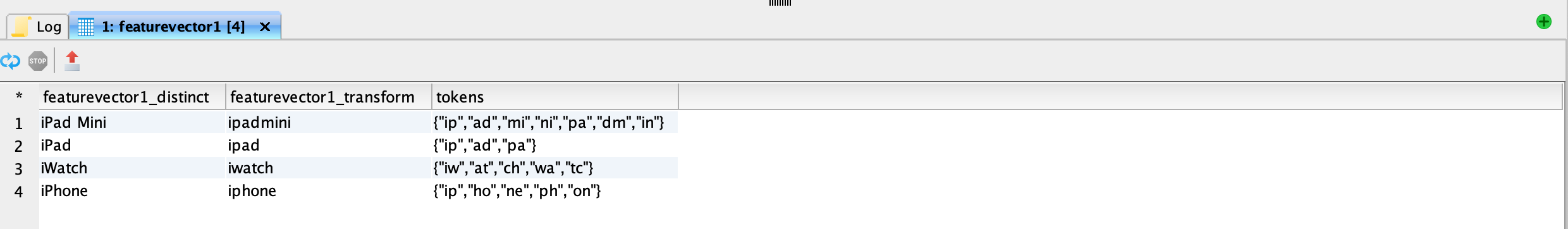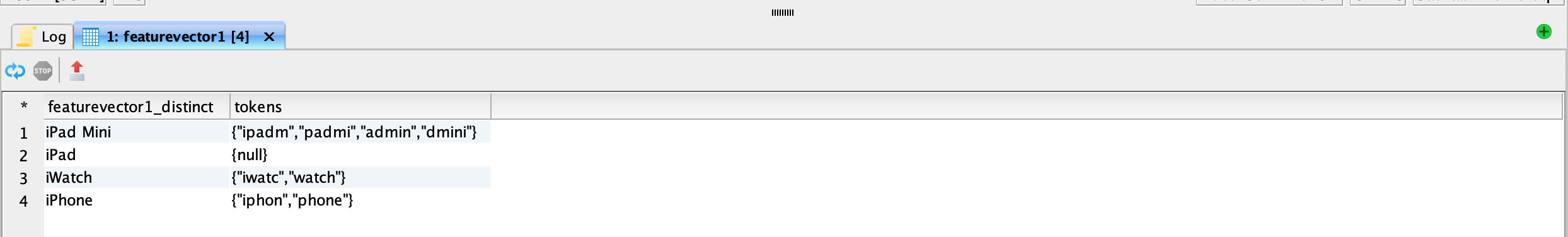 <figure><img src="https://1899859430-files.gitbook.io/~/files/v0/b/gitbook-x-prod.appspot.com/o/spaces%2FEhcgqFIfGdE0GXJzi5yR%2Fuploads%2FSsbTmLLCcvoexFSXtuYn%2FScreen%20Shot%202023-09-14%20at%2011.38.17%20PM.png?alt=media&#x26;token=cd038ee1-e312-4310-a84c-1afdb86c8c81" alt=""><figcaption><p>Mateialized view of featurevector2 after it has been tokenized.</p></figcaption></figure>