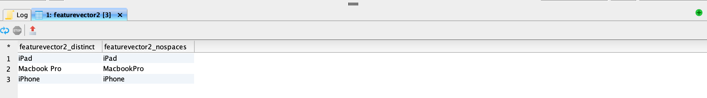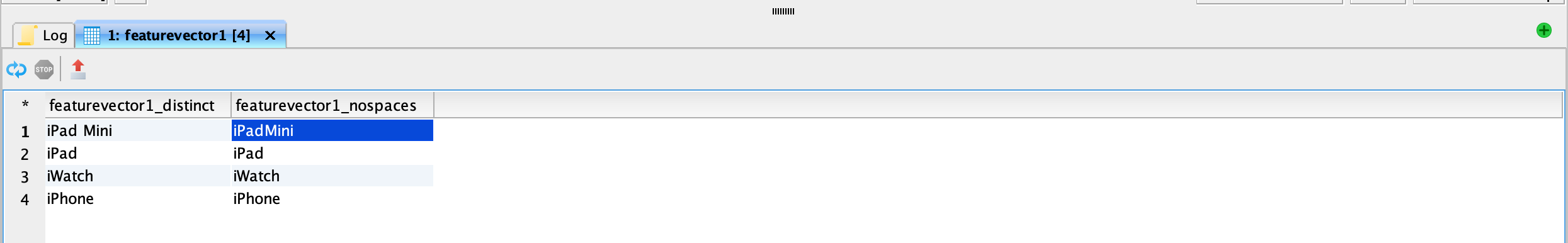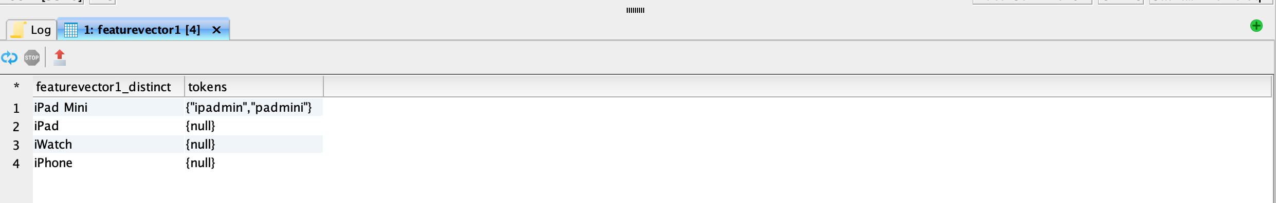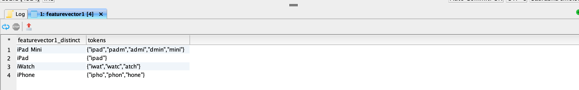 <figure><img src="https://1899859430-files.gitbook.io/~/files/v0/b/gitbook-x-prod.appspot.com/o/spaces%2FEhcgqFIfGdE0GXJzi5yR%2Fuploads%2FSsbTmLLCcvoexFSXtuYn%2FScreen%20Shot%202023-09-14%20at%2011.38.17%20PM.png?alt=media&#x26;token=cd038ee1-e312-4310-a84c-1afdb86c8c81" alt=""><figcaption><p>Mateialized view of featurevector2 after it has been tokenized.</p></figcaption></figure>