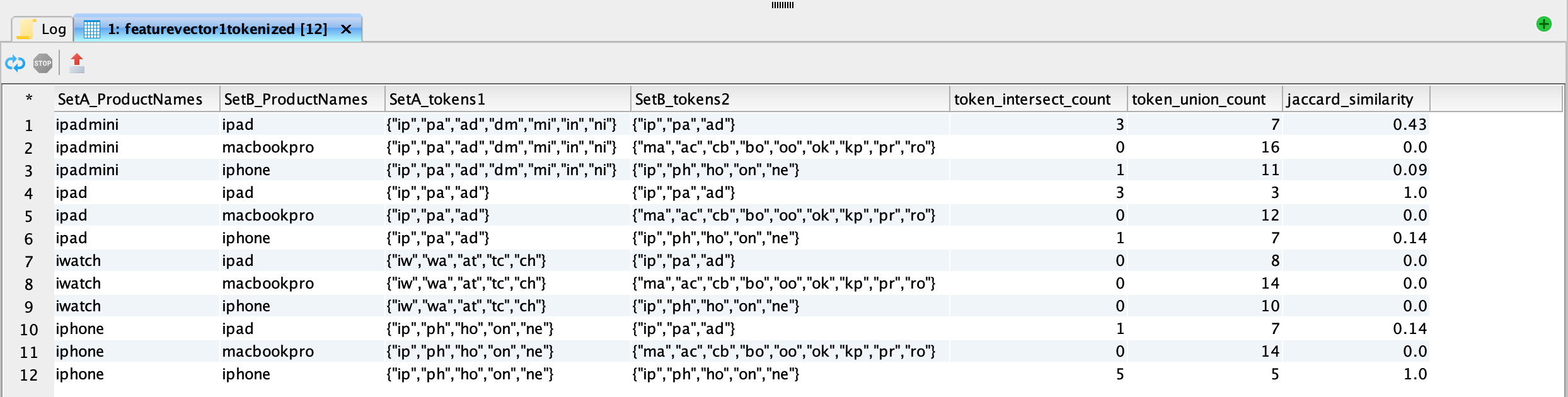This is the similarity between the two sets that will become the columns in our join. But we need pairwise similarity between each element in Set A with that in Set B.